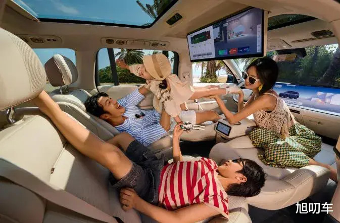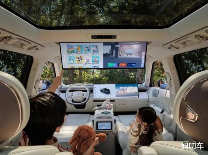 在全家一起看电影时,前后屏形成连贯的视觉场景,5.2米的车身瞬间化作移动IMAX影厅。还有就是可以有效的解决了二娃抢电视的问题,各看各的互不干扰。