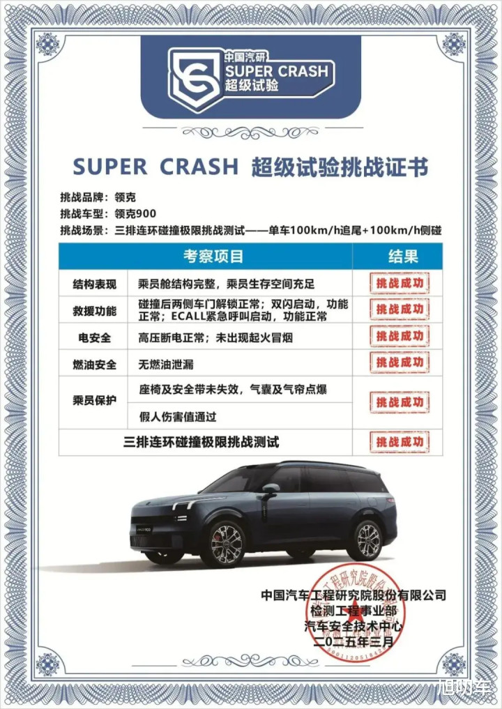 并且,领克900完成了国内首次双百时速“超标准”连环碰撞,不仅刷新大型家用SUV安全新标杆,也在全球树立尾碰的安全新标杆。