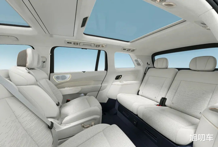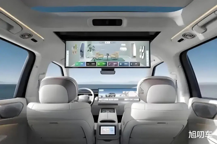 前排驾驶舱给人印象最深刻的是中控上的30英寸的6K中控副驾一体式天际屏+12.66英寸高清液晶仪表,还配有95英寸的HUD抬头显示,以及30英寸后排液晶屏。